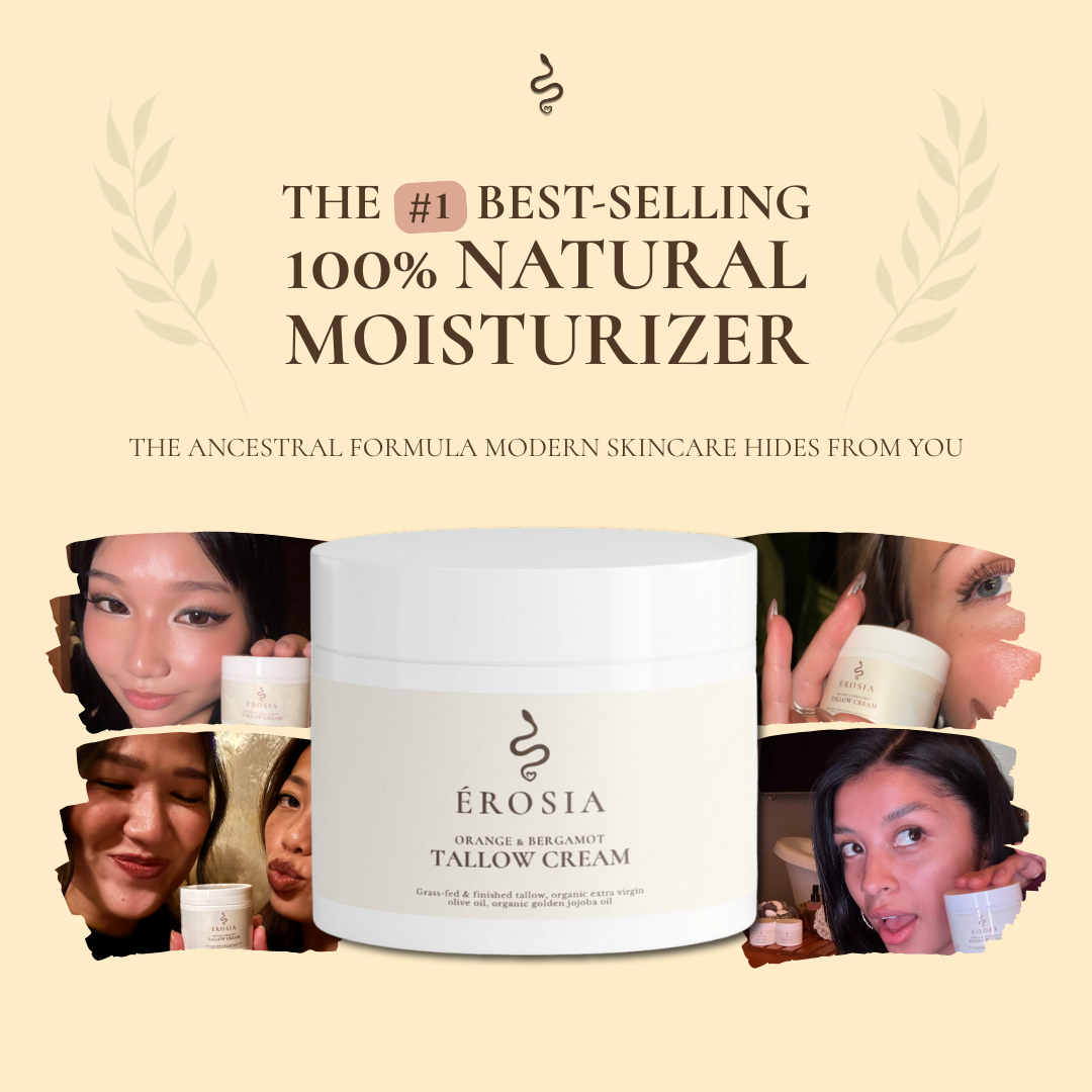 Most modern moisturizers are filled with synthetic ingredients your skin was never meant to absorb. These compounds don’t simply sit on the surface they enter your body, disrupt your natural balance, and work against your skin’s own healing abilities. ÉROSIA was created to offer the opposite: pure, ancestral, skin compatible nourishment with nothing to hide.